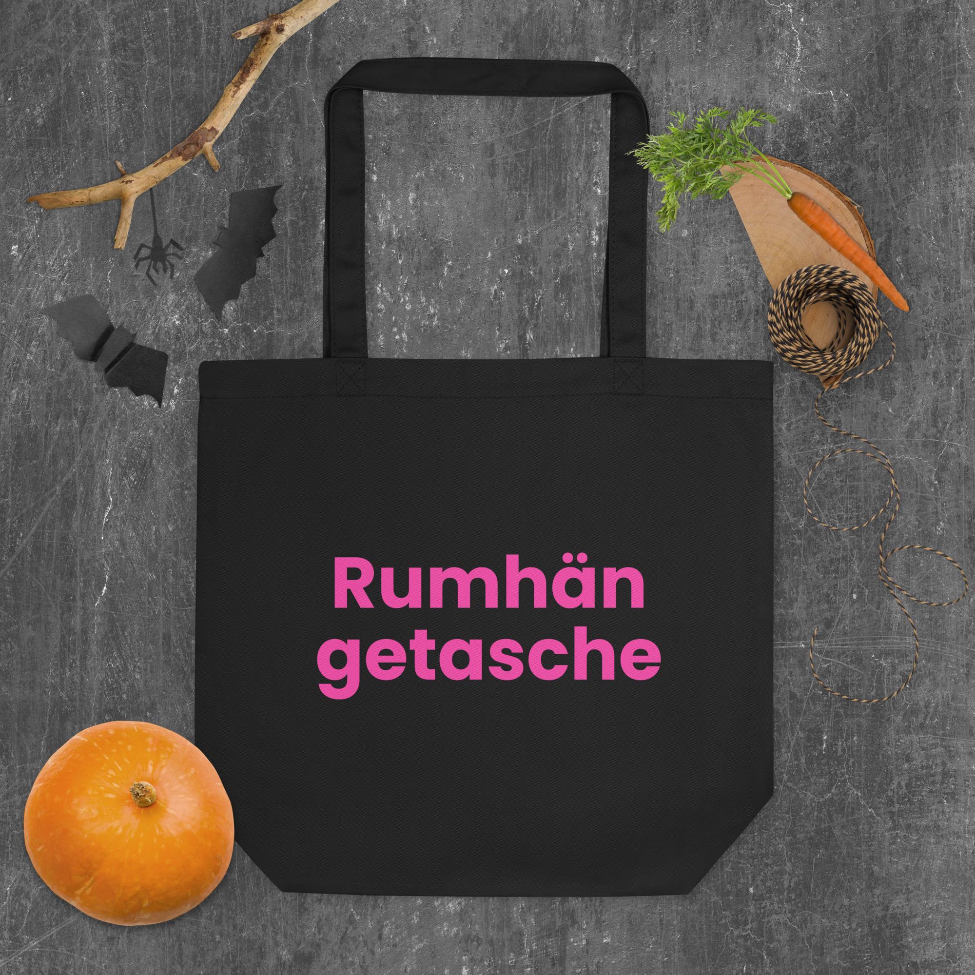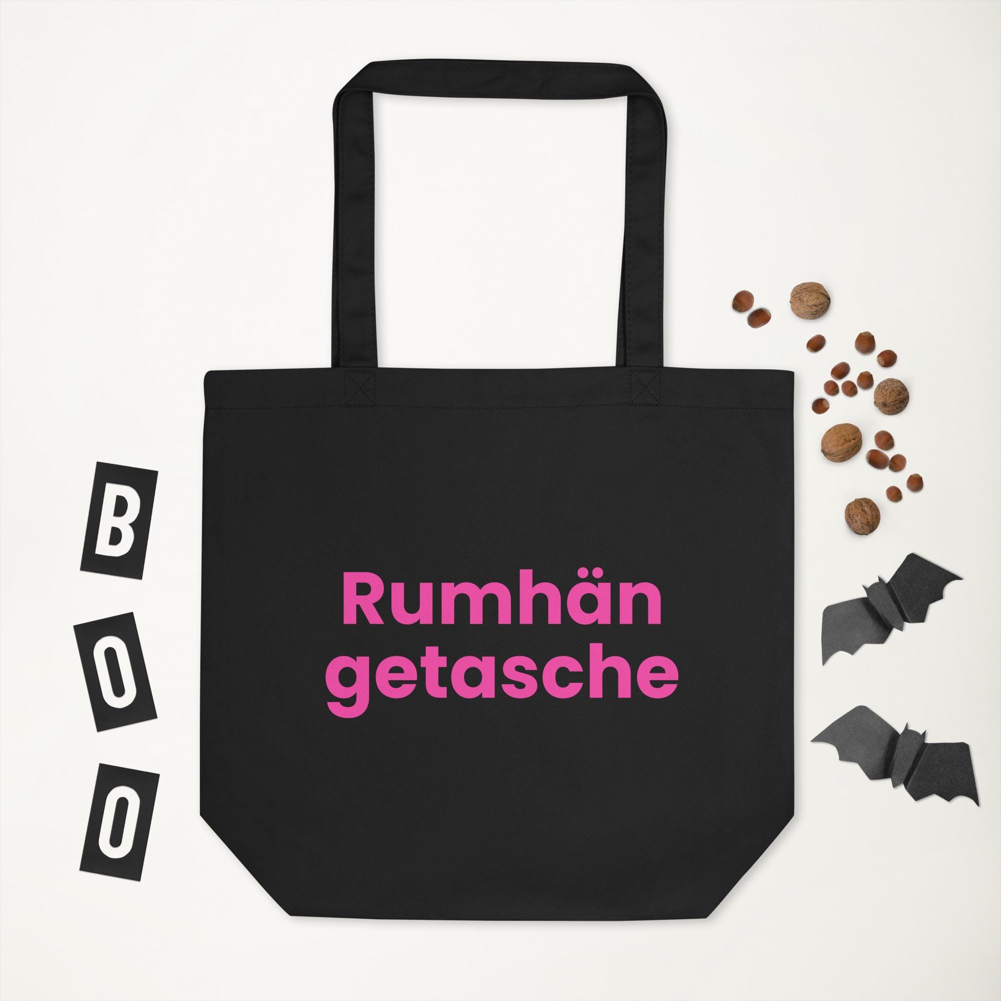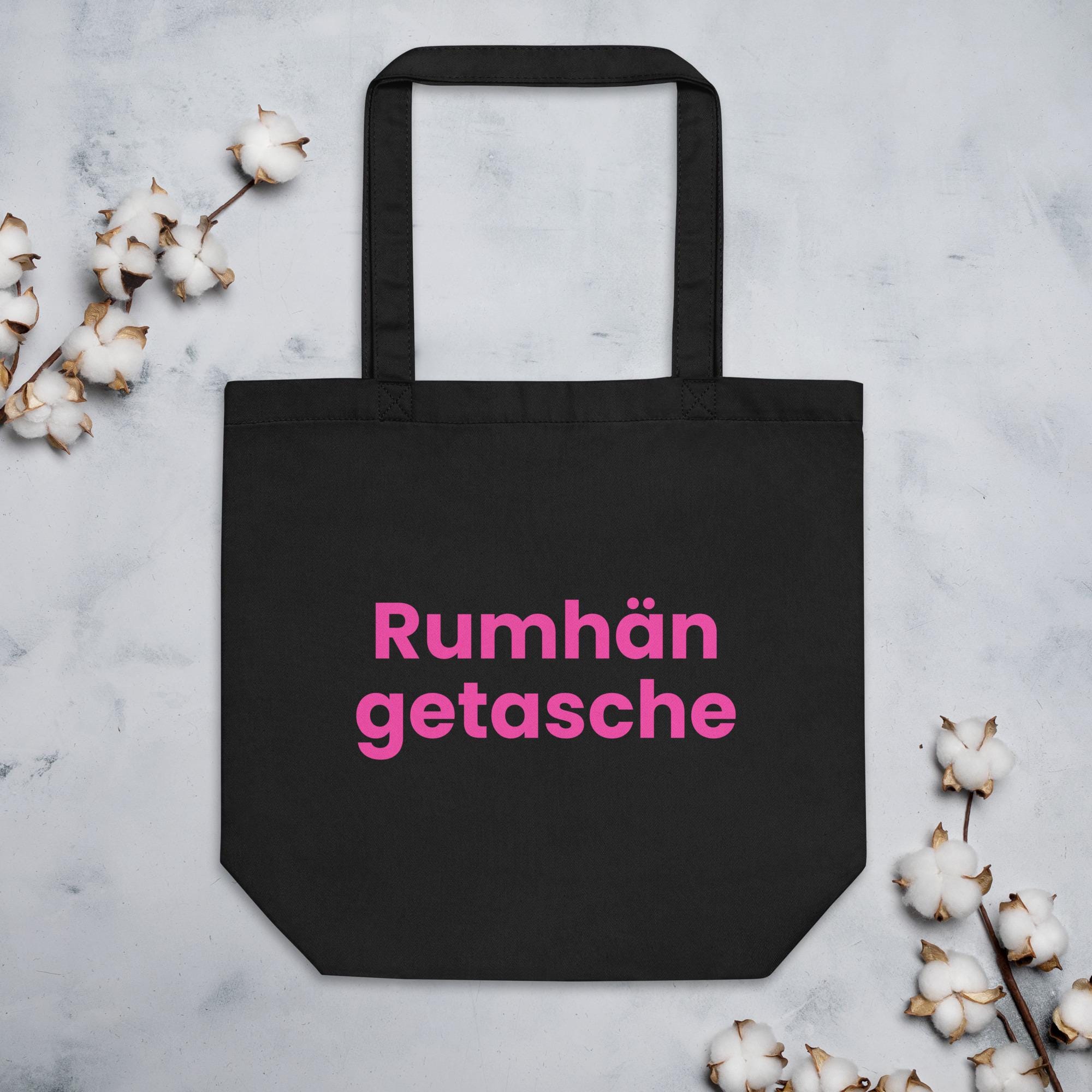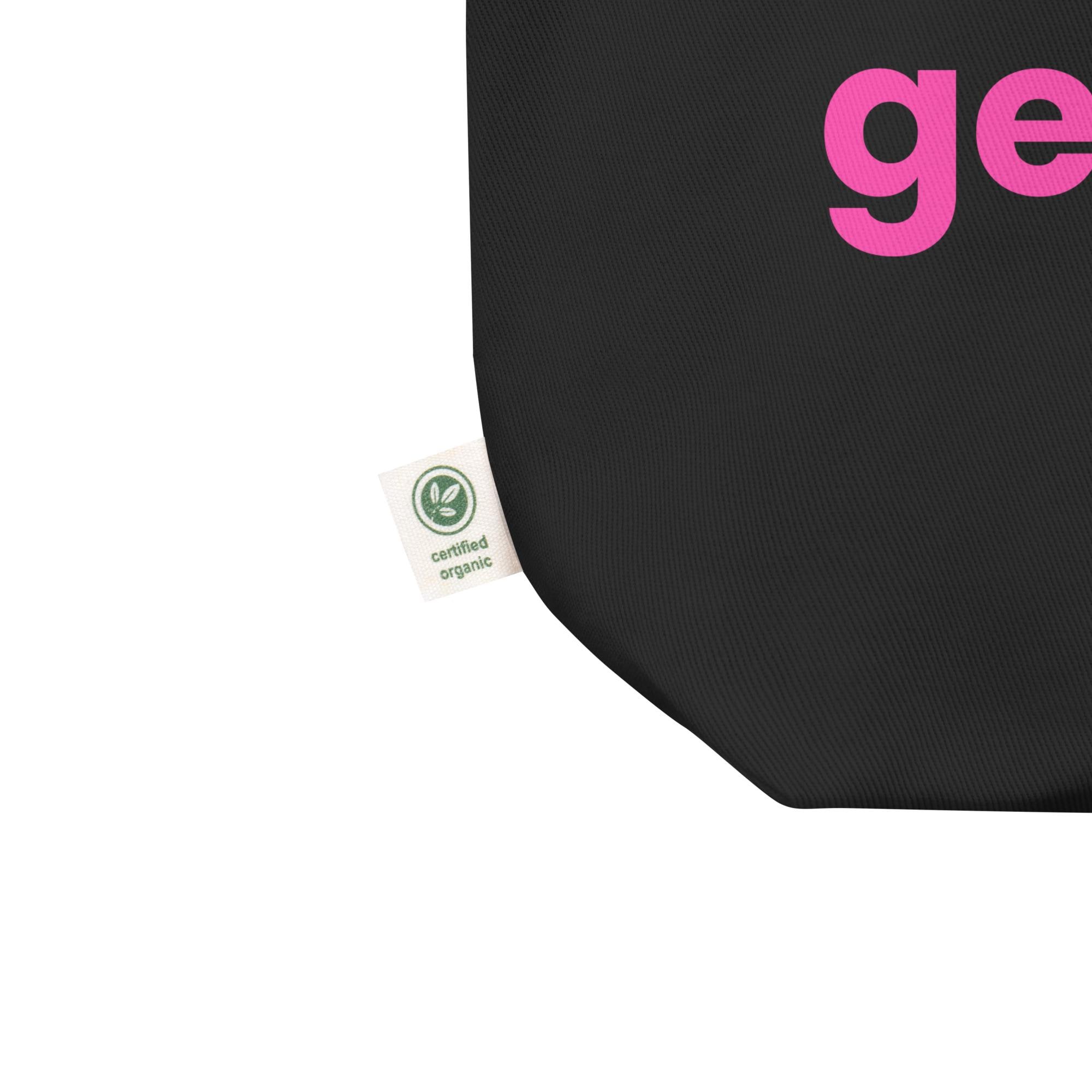 Black, sturdy, organic cotton. With a bright pink statement print. A bag that loves hanging out as much as you do.