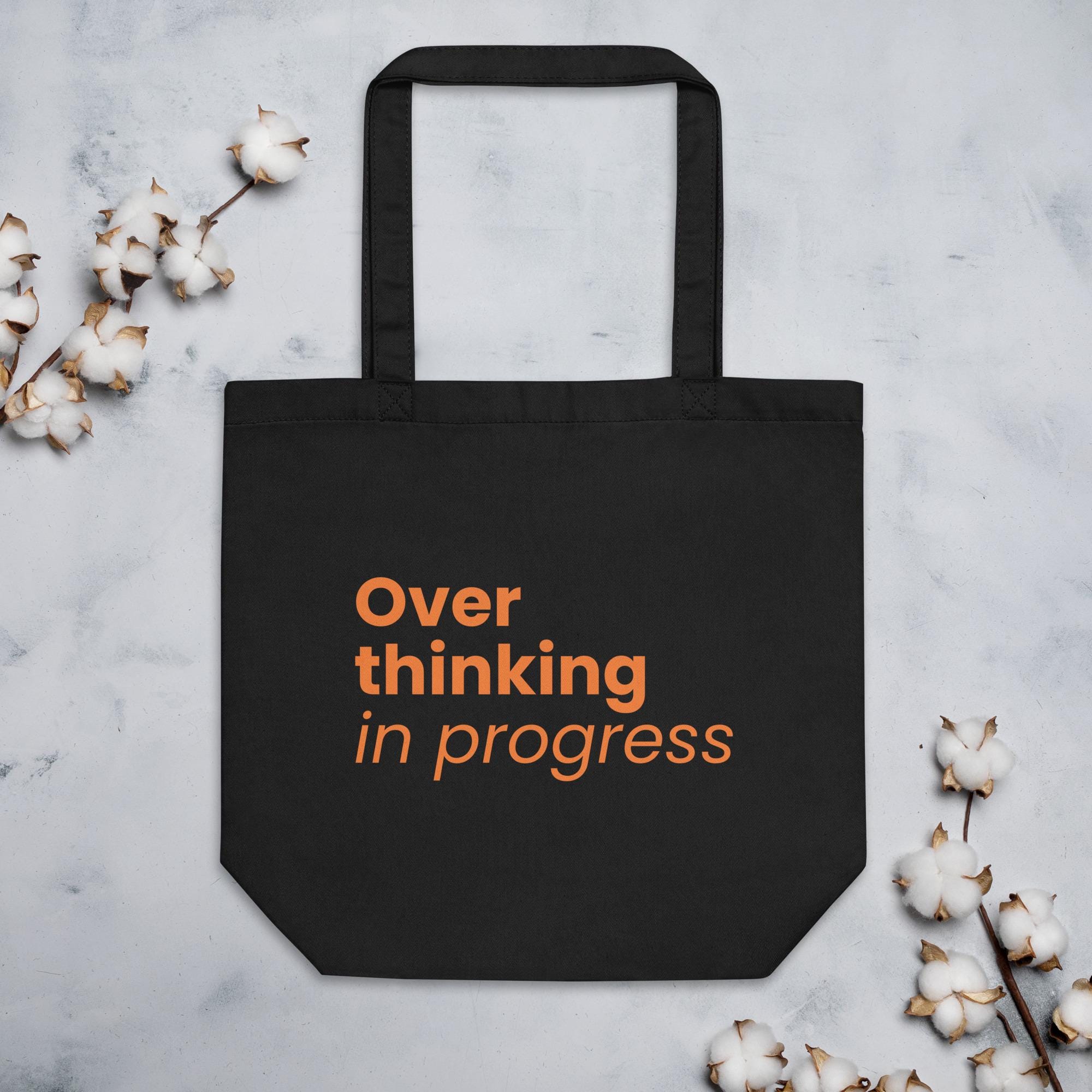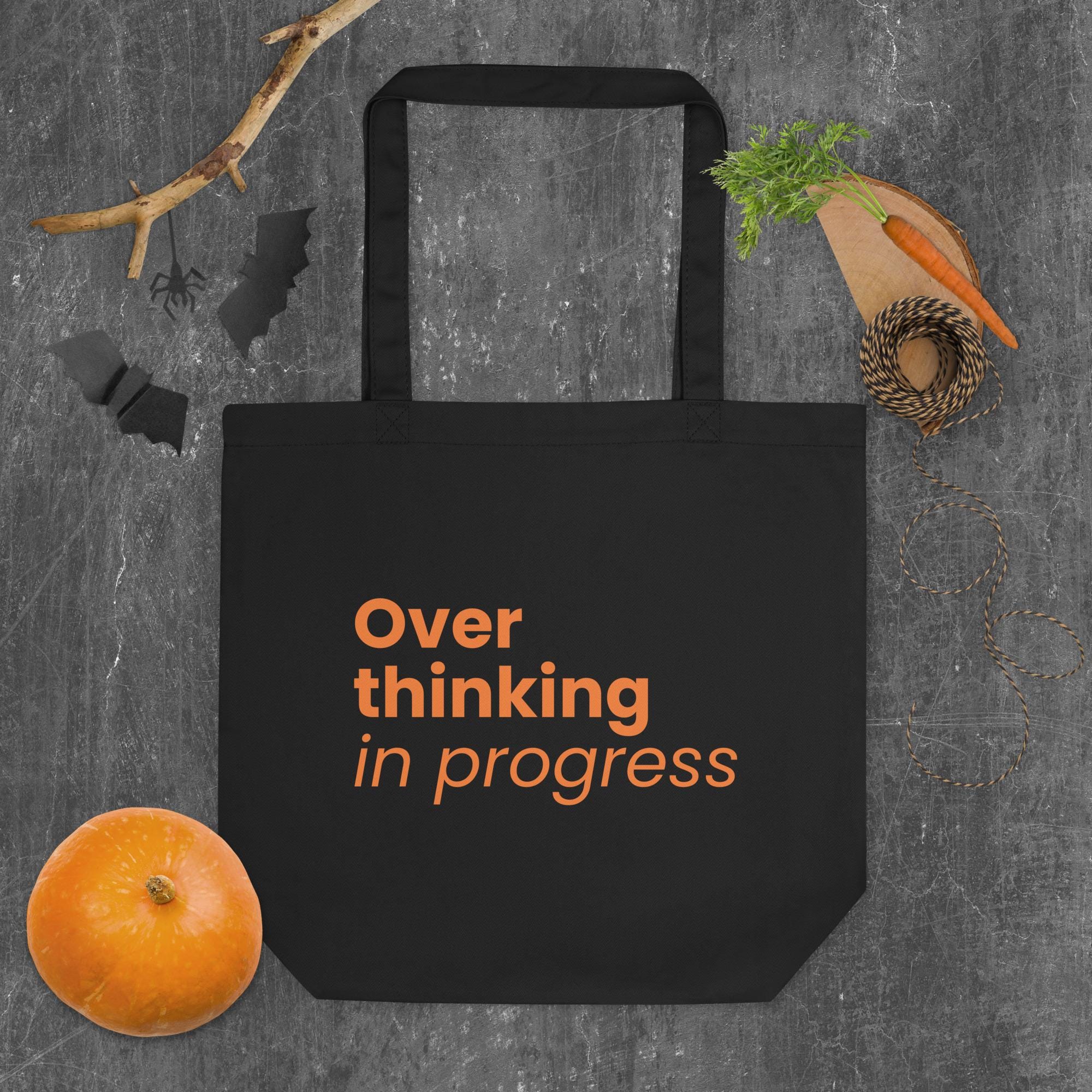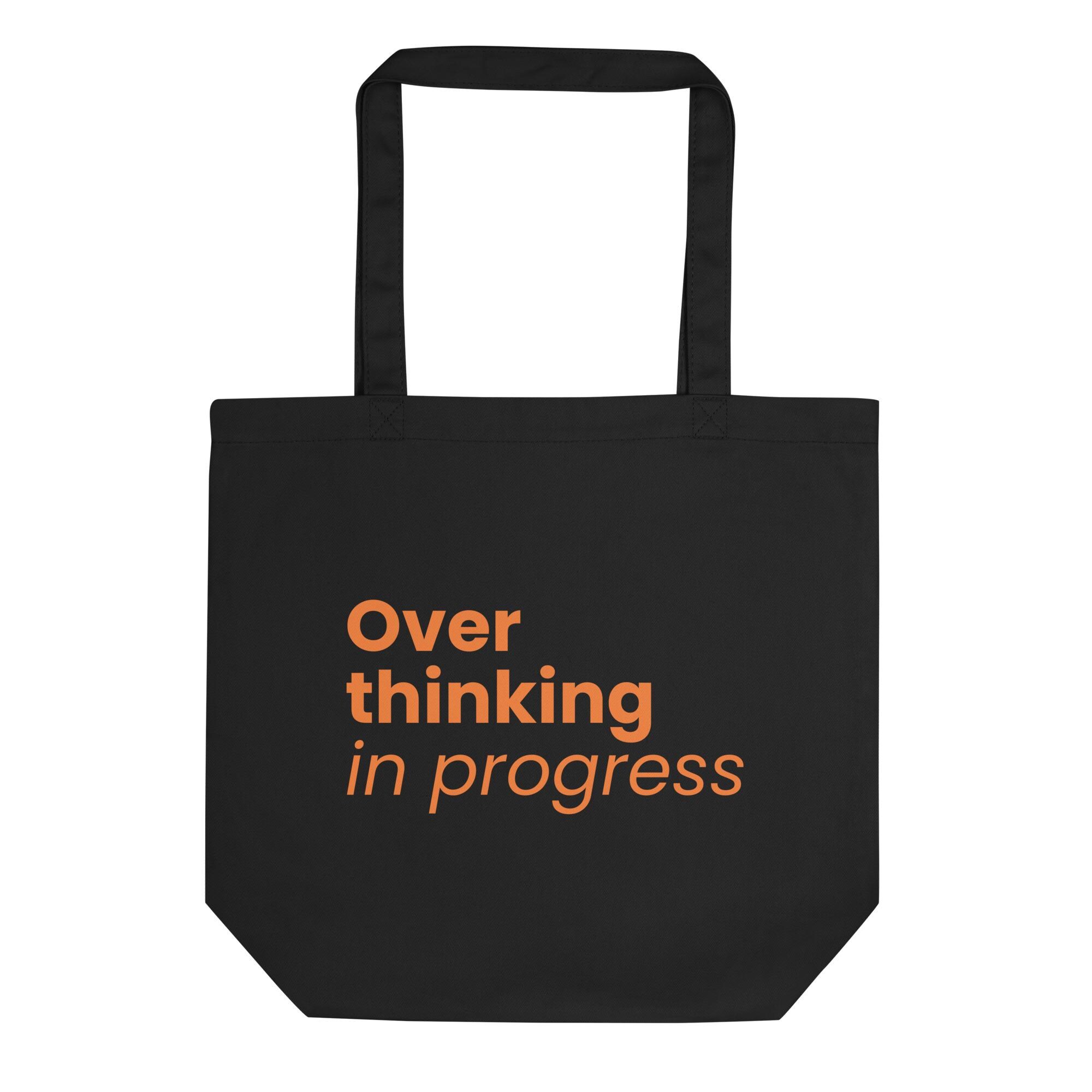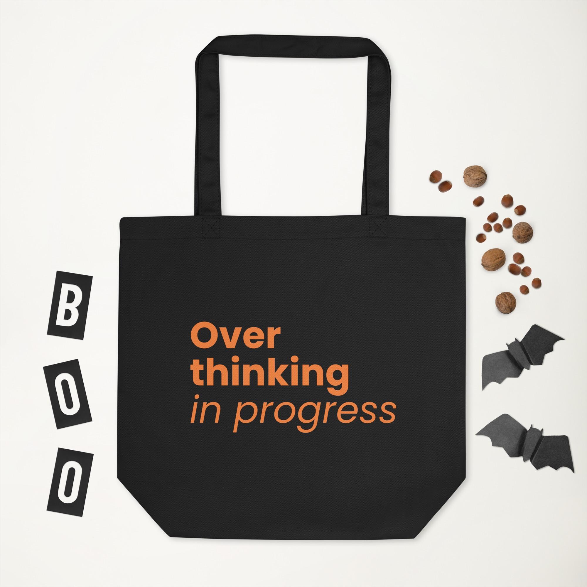 Sometimes one look is enough to say it all: "Overthinking in progress." This black tote with a bold orange print is your faithful companion for all those thoughts that take up too much space—and at the same time, a clear, tongue-in-cheek statement.