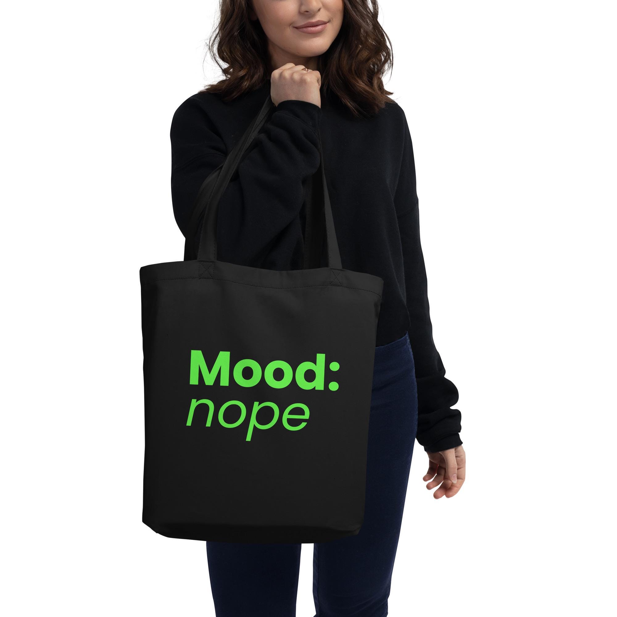 Sometimes one word says it all: "Mood: nope." This black fabric bag with a green print is your faithful companion for all those days when nothing fits—and at the same time, a clear, tongue-in-cheek statement. The perfect gift for her, whether for her sister, mom, or best friend who loves direct humor.