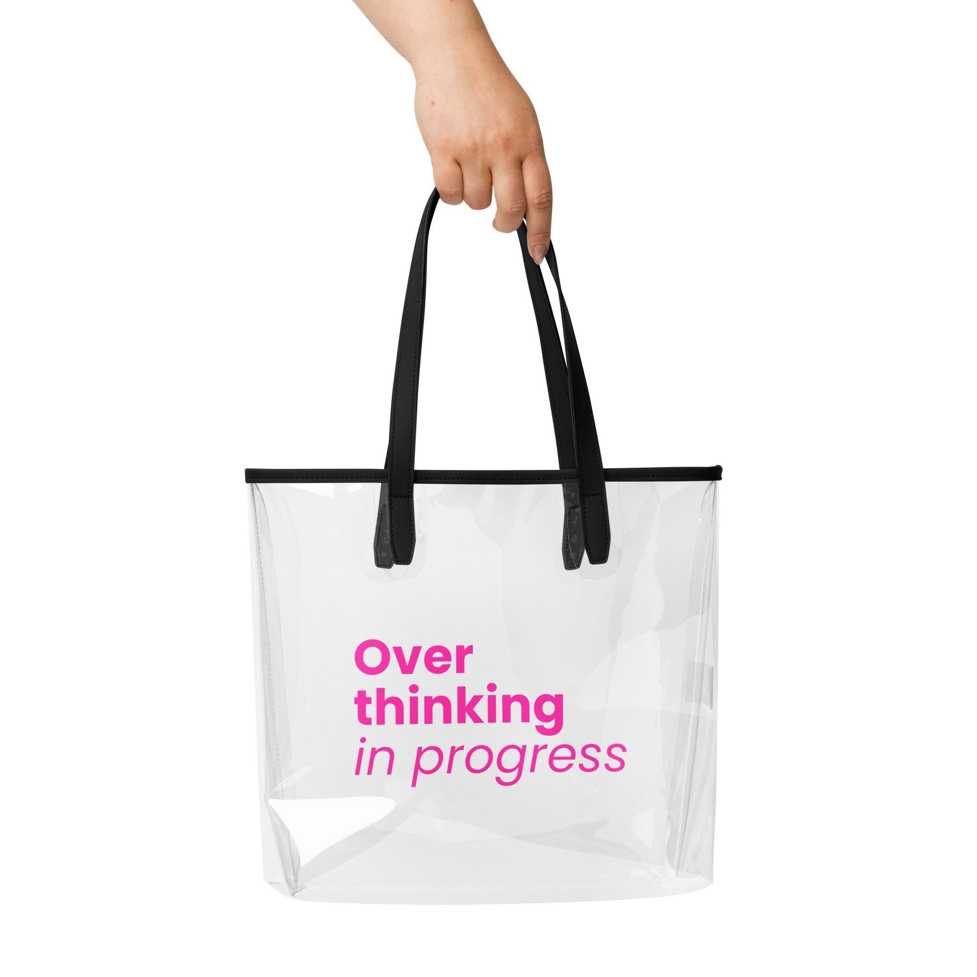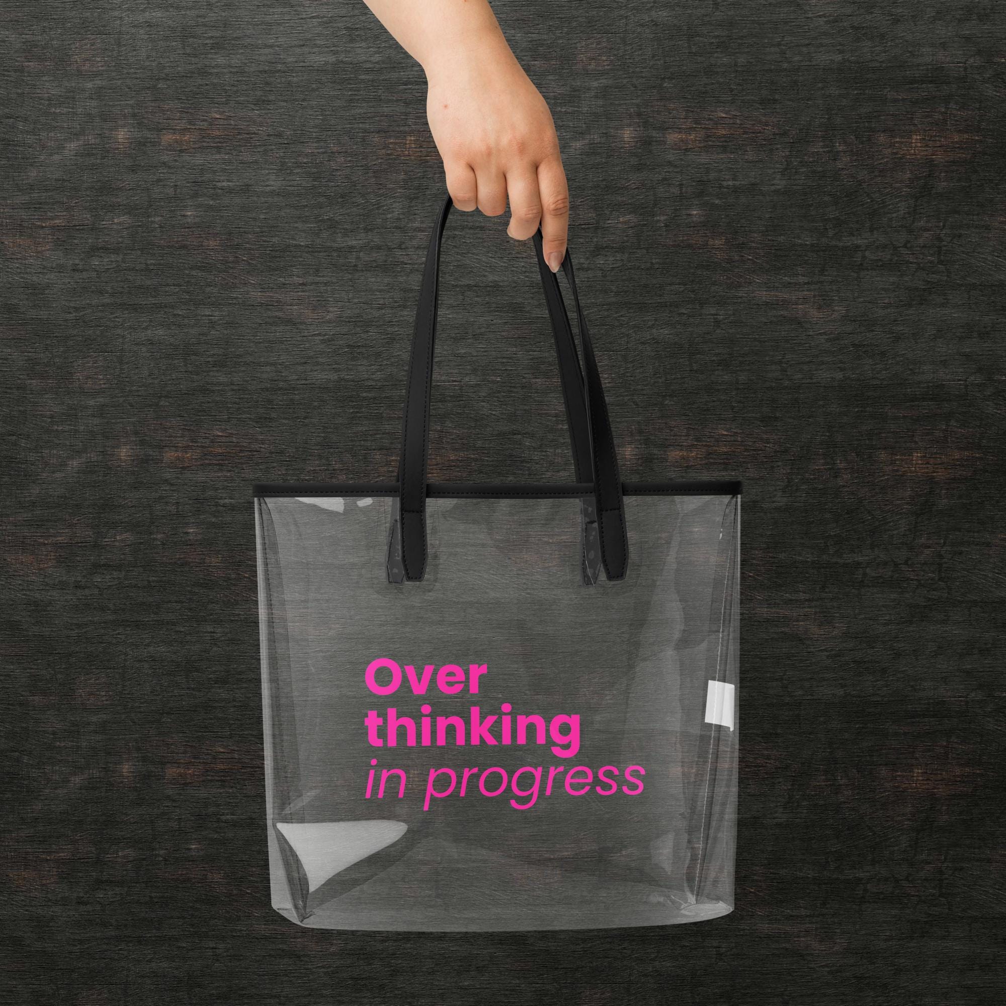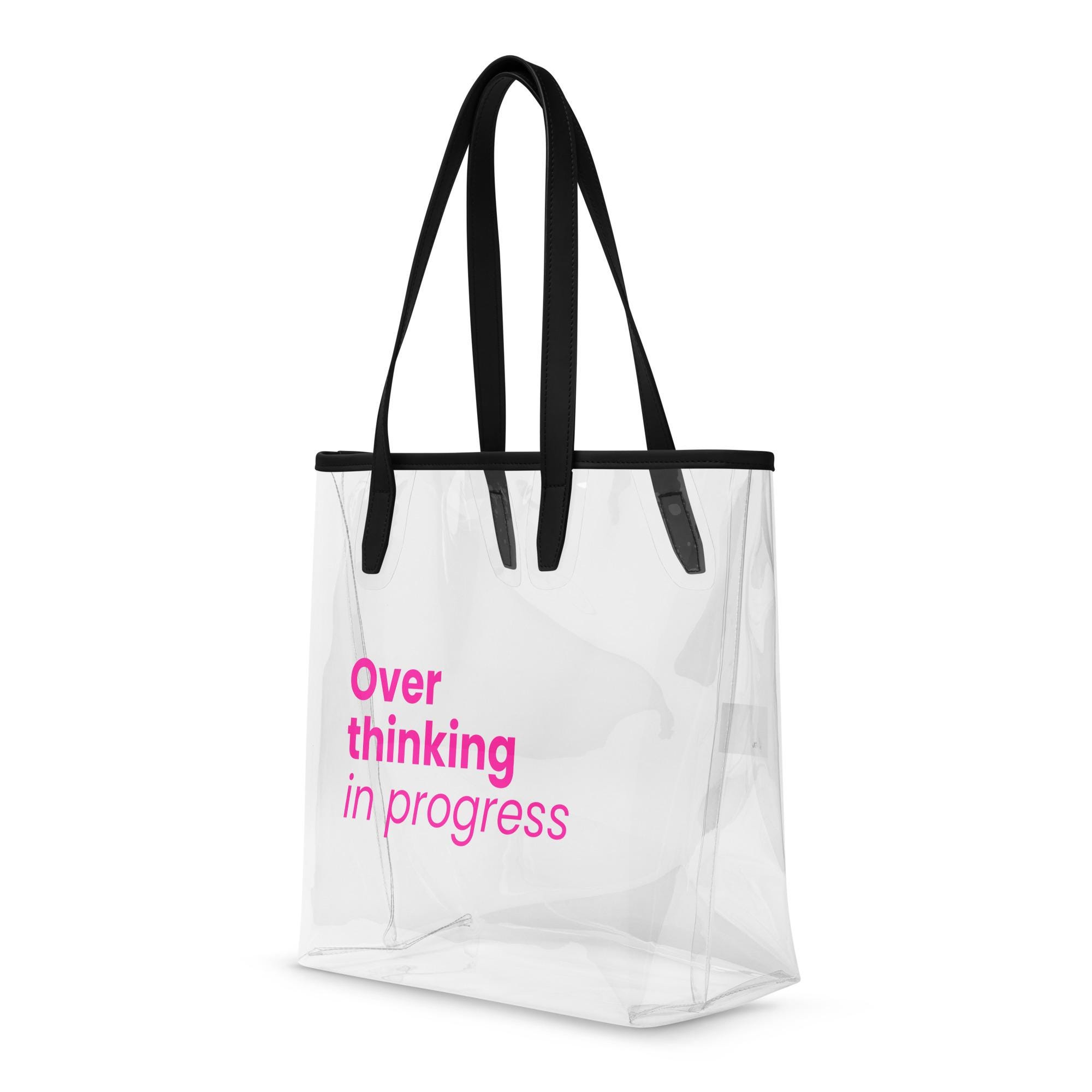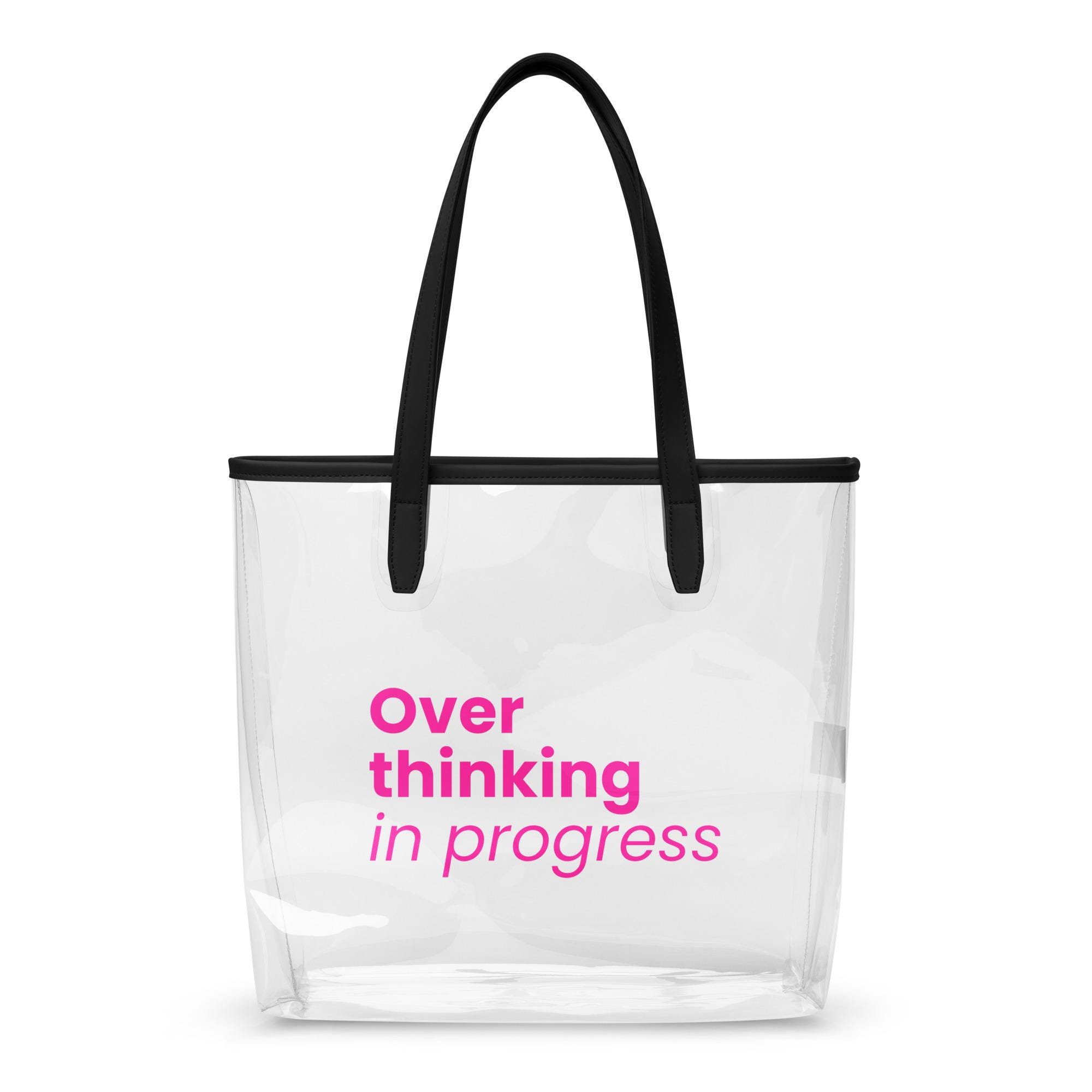 Is your mind working overtime? "Overthinking in progress" could be your personal loading screen. This transparent bag with a bright pink print transforms your endless thought loops into an honest fashion statement. A funny gift for her—whether it's for your sister, best friend, or that coworker who's still playing through worst-case scenarios at 3 a.m.