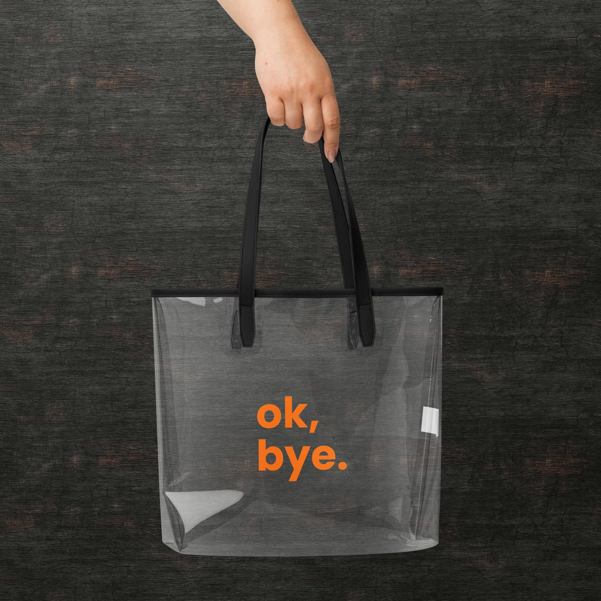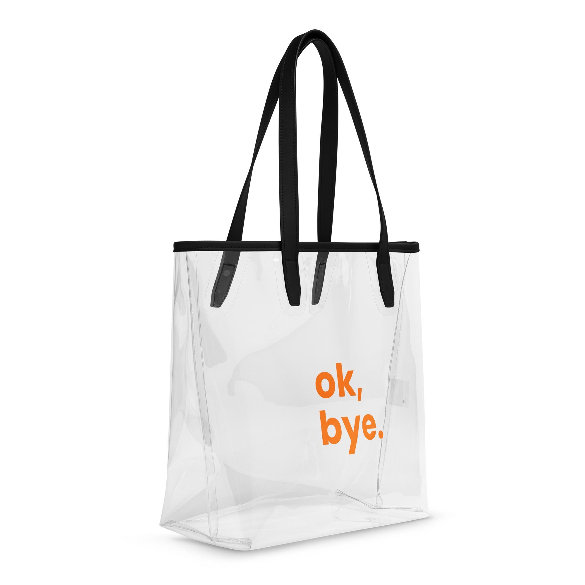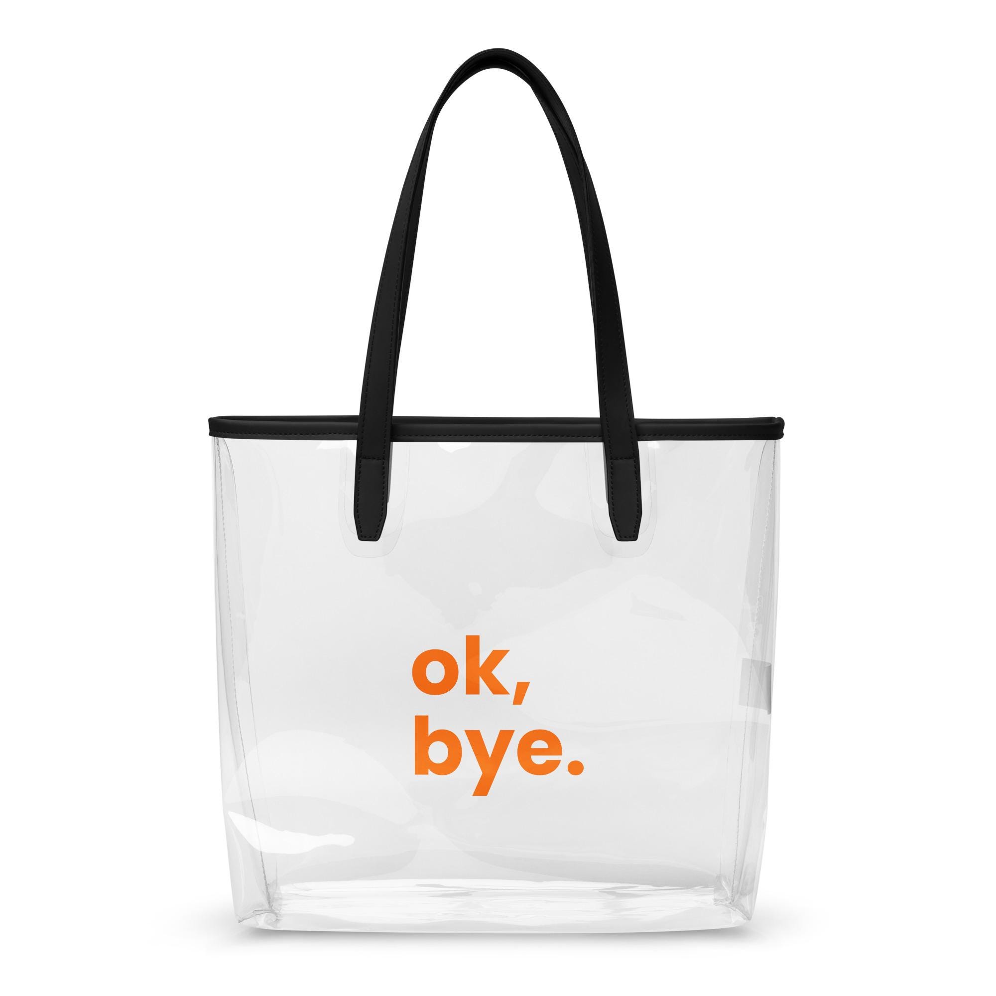 Ok, bye. – Diese transparente TPU-Tasche bringt Minimalismus und Streetstyle auf den Punkt. Mit dem kräftigen orangenen Print wird sie zum Fashion-Statement, das jedes Outfit aufwertet.